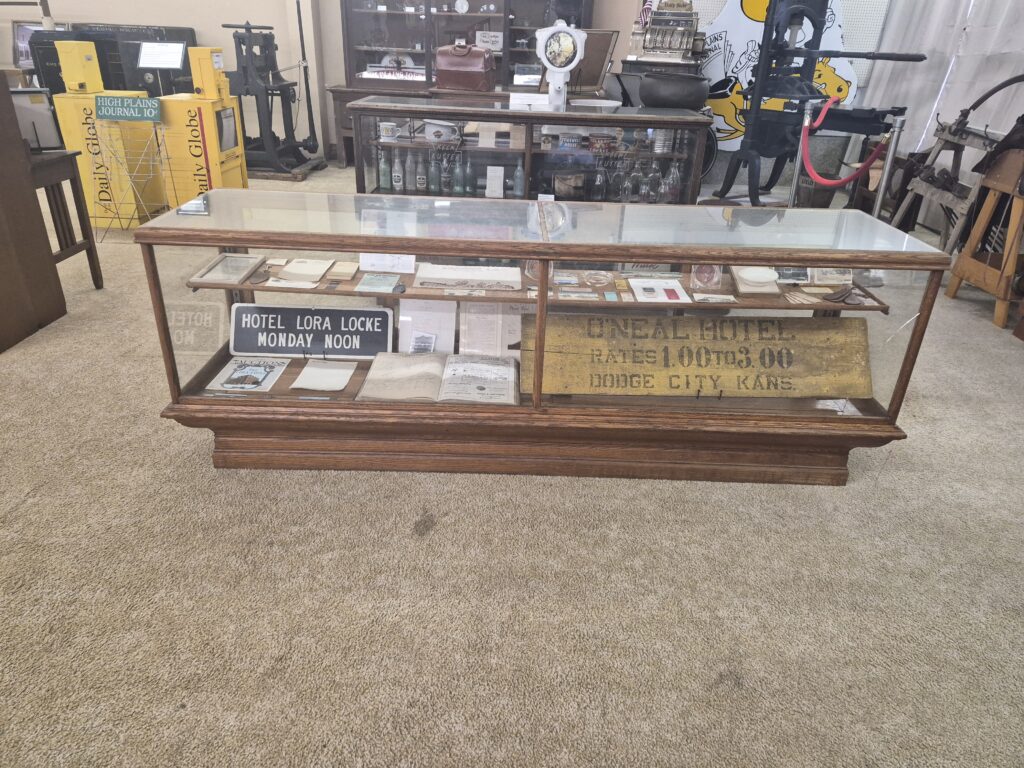 Ford County Historical Society also has artifacts from around the county on display, including photographer Troy Robinson’s camera collection, several items from Ford and Bucklin schools, and a saddle belonging to the legendary horseman, Gus Crump.